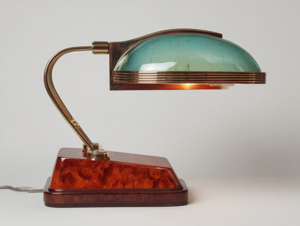 Les luminaires Art Déco sont spectaculaires : abat-jour en verre opalin, lampes à pied chromé, appliques géométriques ou suspensions en cascade.