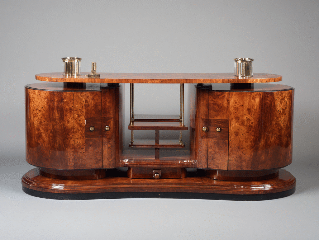 Les meubles Art Déco se distinguent par leurs formes arrondies, leurs pieds galbés et leurs lignes équilibrées.
