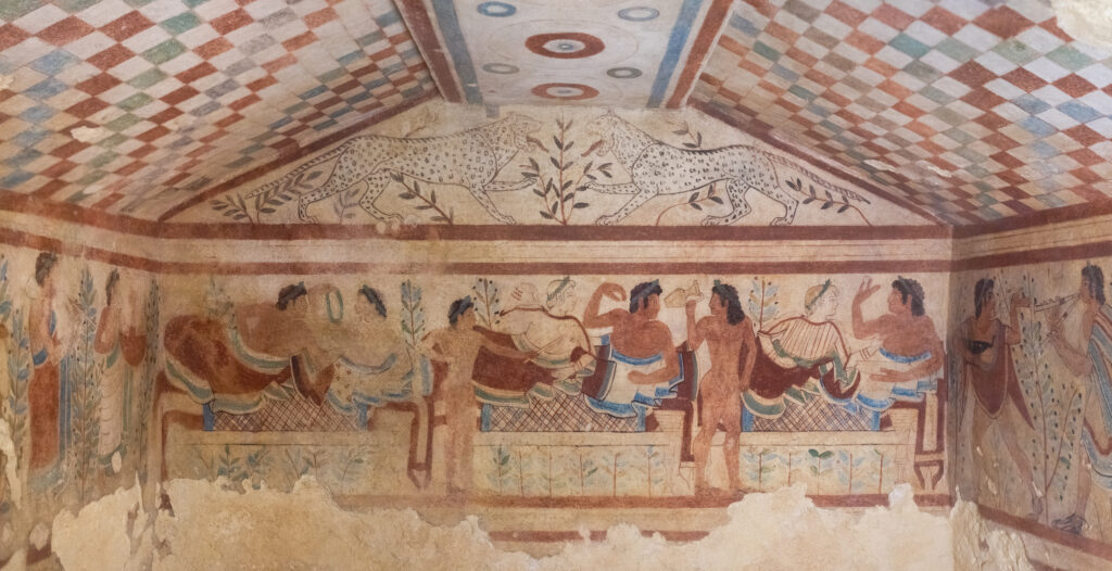 Ces décors n’avaient pas pour but d’effrayer ou d’éloigner le défunt, mais d’accompagner son passage dans l’au-delà avec les plaisirs qu’il avait connus : musique, danse, banquets, jeux et chasses. En pénétrant dans une tombe étrusque, on a presque le sentiment d’interrompre une fête figée dans le temps.